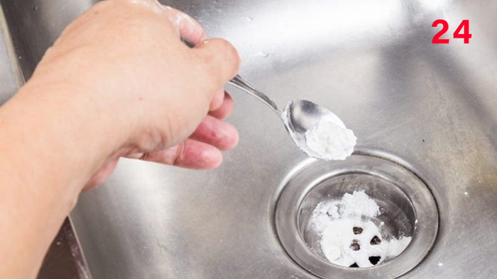 تمیز کردن با جوش شیرین و تمیز کردن لوله با سرکه می‌تواند برای رفع گرفتگی سینک ظرفشویی واقعا موثر باشد. اگر آب سینک شما تخلیه نمی‌شود، نصف فنجان جوش شیرین را با همان مقدار نمک مخلوط کنید و در قسمت تخلیه آب سینک بریزید. بگذارید چند ساعت بماند سپس با آب جوش بشویید.